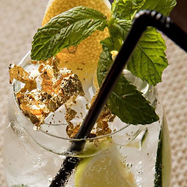 24K Edible Gold Leaf: Extremely thin that averages about 0.1-0.2 microns in thickness and will simply dissolve in the gourmet’s mouth